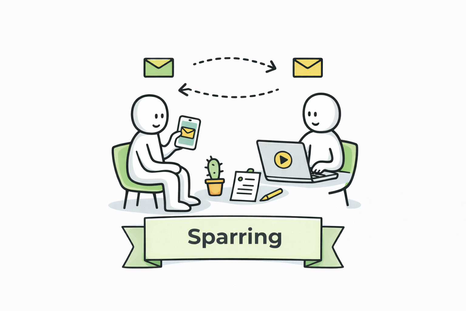 Kontinuierliches E-Mail-Sparring für Fragen und Reflexionen, verhindert, dass Themen bis zur nächsten Session liegen bleiben.